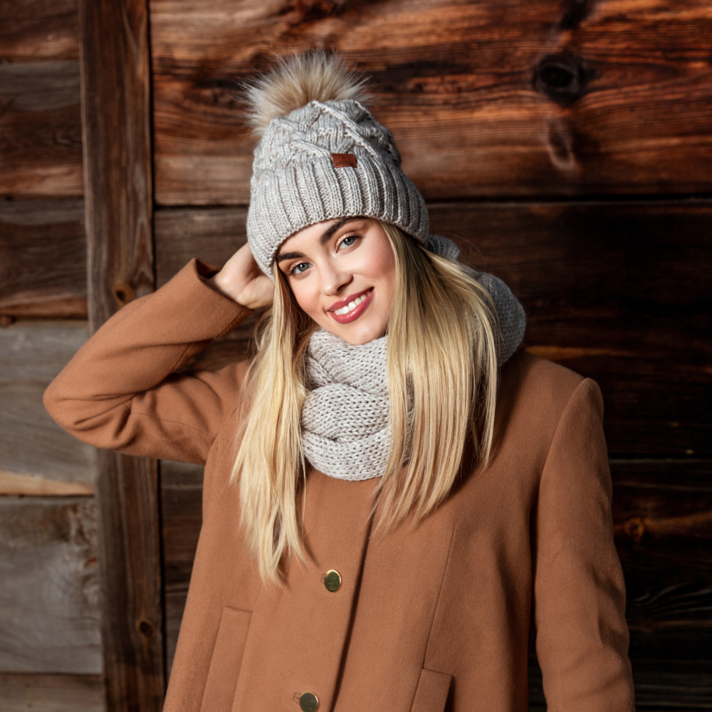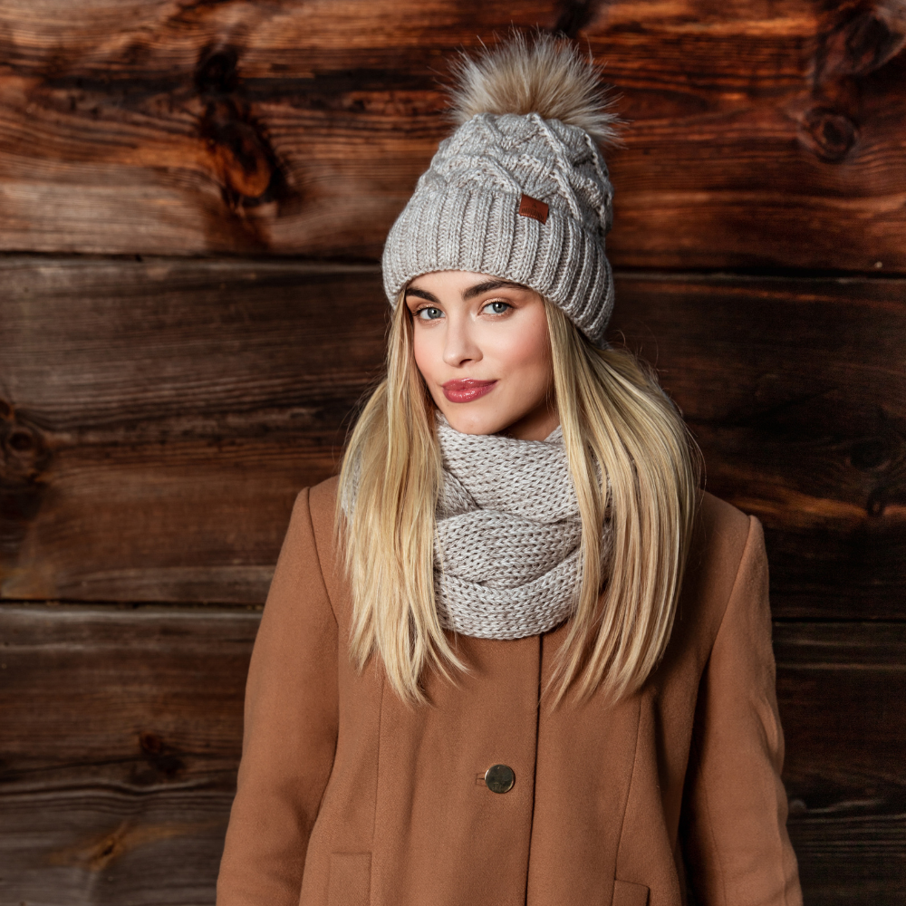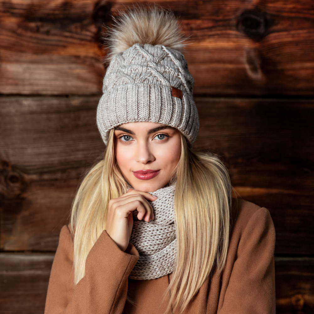Niezwykle ciepły i uroczy damski komplet na zimę w kolorze beżowym. W skład zestawu wchodzi czapka z puchatym pomponem ocieplona wysokogatunkowym mikropolarem oraz duży komin zakładany na dwa razy. Idealny wybór na prawdziwie mroźne zimy :)